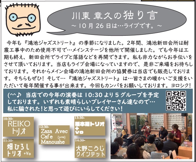当店も26日は営業をお休みして、店内でライブを行わせていただきます。🫡お楽しみに〜!