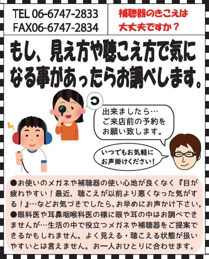 メガネ👓や補聴器🦻でお困りのことや知りたい事、何でも構いませんので…お声掛けくださいませ!お待ちしてます!👍