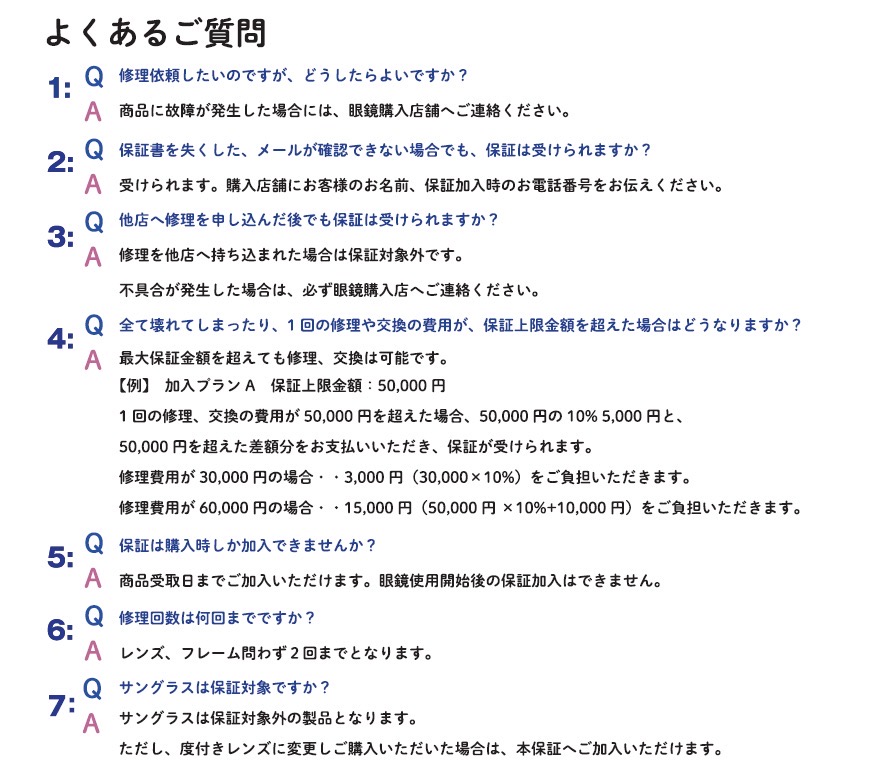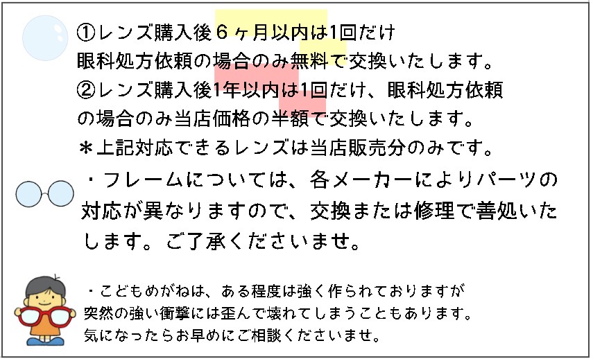 お客さまから…《こどもめがね》についてよくお尋ねいただくのは『保証について』です。