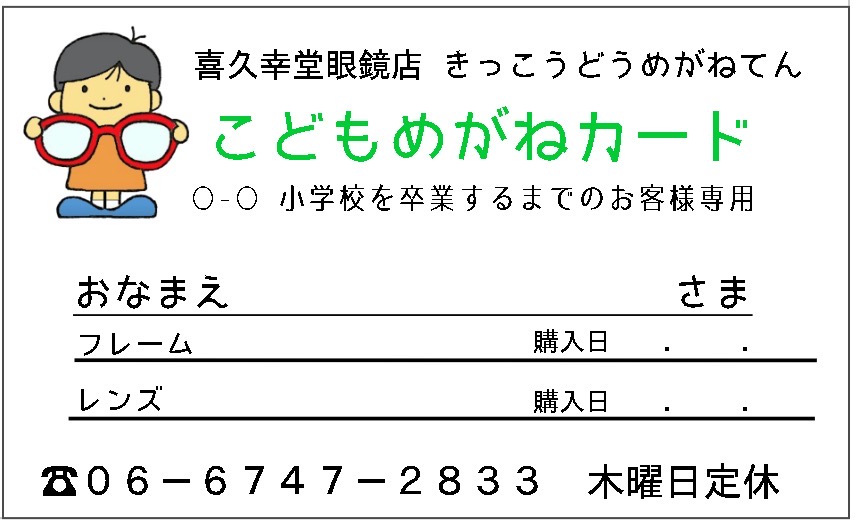 それで、当店で初めて独自の保証制度を考えました。小学校に通っておられるこどもさんたち限定ですが、下の《保証カード》を作りました。